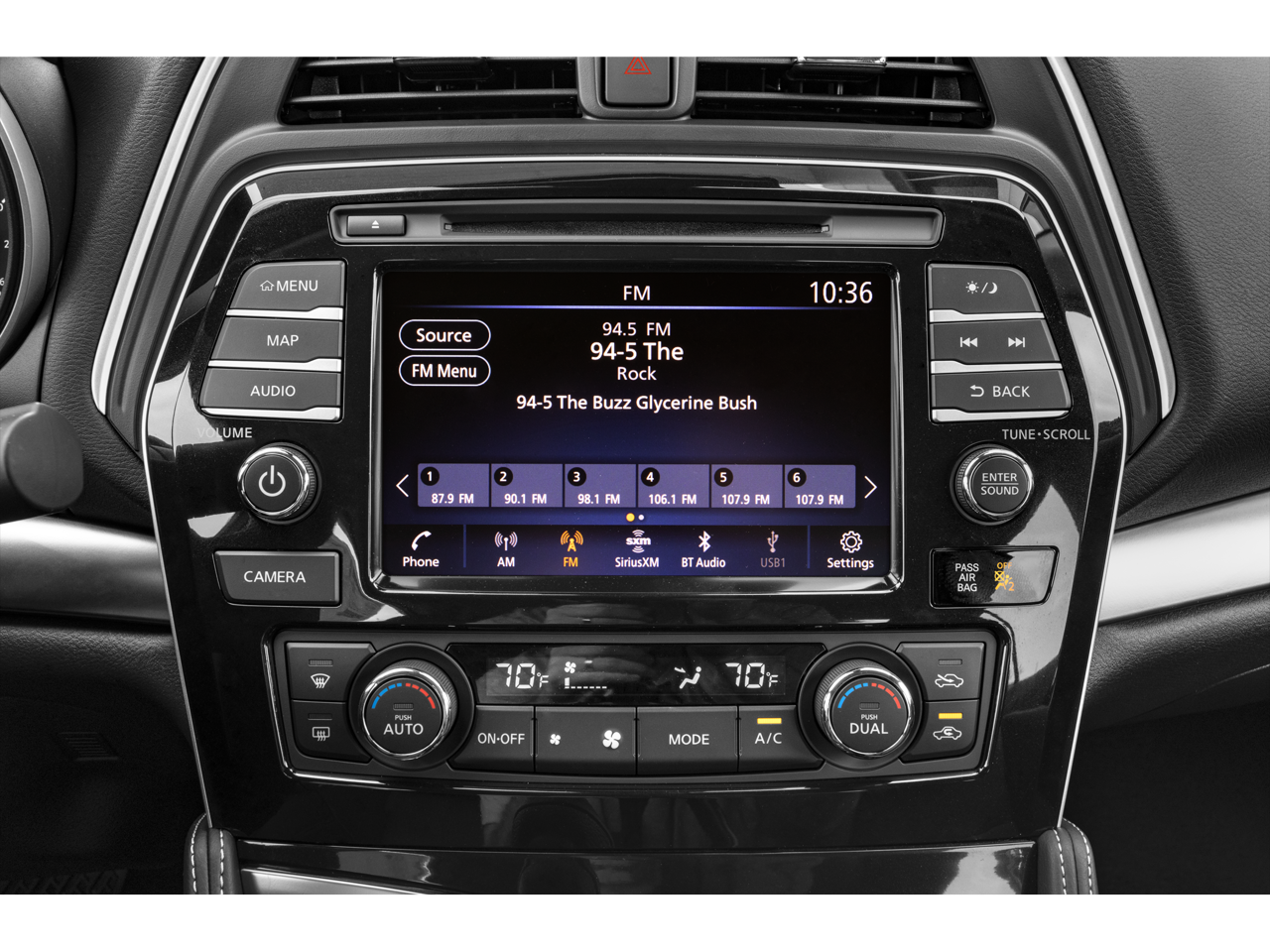 - Radio: AM/FM/CD Audio System -inc: MP3/WMA/AUX reader, 8 speakers, NissanConnect featuring 8" color display w/multi-touch control, Apple CarPlay, Android Auto, 2 front illuminated USB connection ports (1 Type-A, 1 Type-C), Bluetooth® hands-free phone system, hands-free text messaging assistant, streaming audio via Bluetooth®, voice recognition, Siri Eyes Free, SiriusXM radio, SiriusXM advanced audio features, NissanConnect services powered by SiriusXM, Wi-Fi hotspot, Nissan door to door navigation, SiriusXM Traffic, SiriusXM Travel Link, display commander and 7" Advanced Drive Assist Display (ADAD)